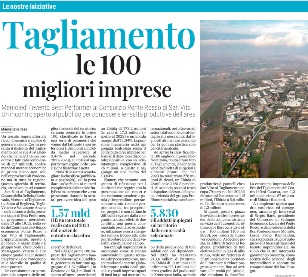 LE IMPRESE DEL TAGLIAMENTO: BEST PERFORMER 2025
